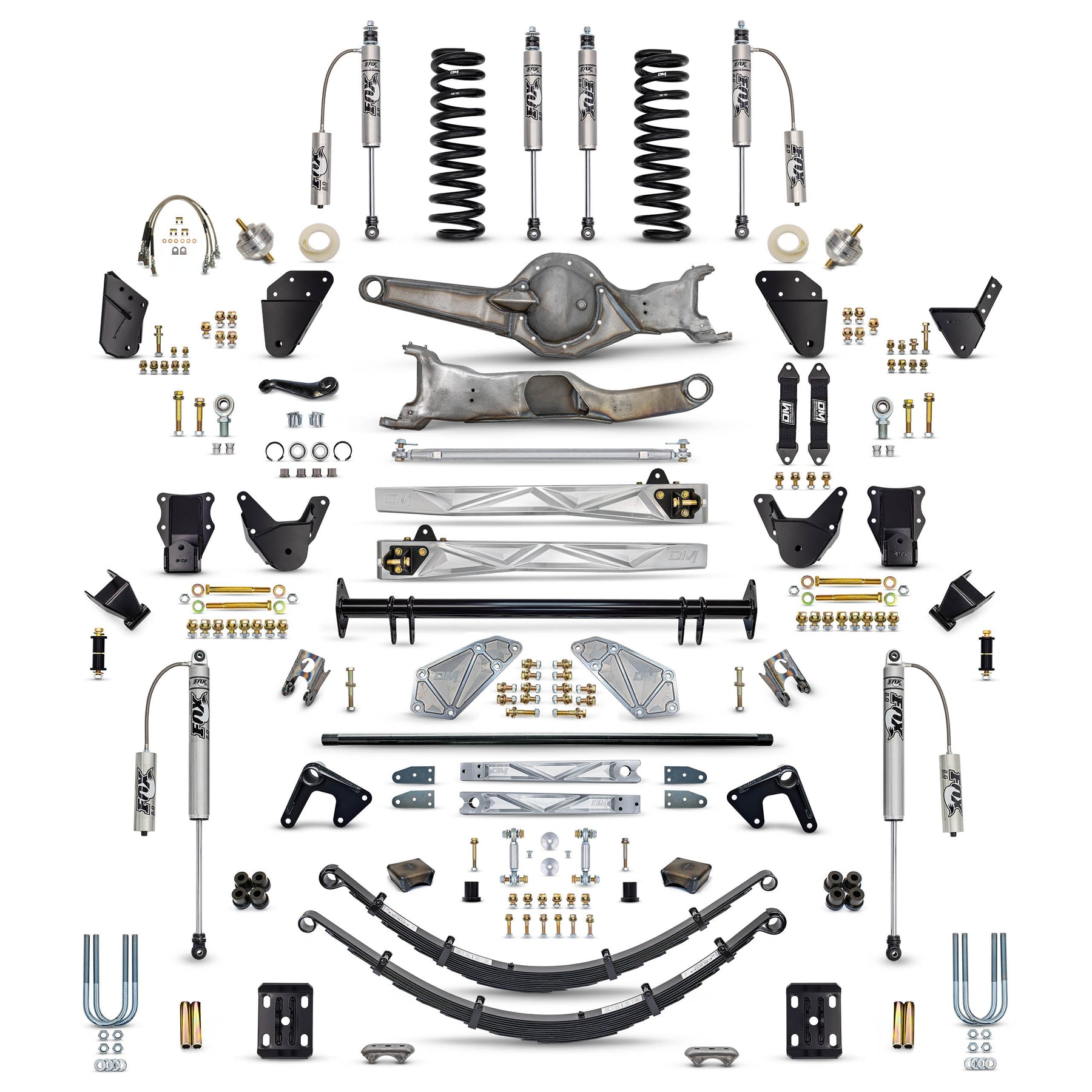 This package includes all top tier parts for a coil spring 6" lift kit. Key advantages of this kit compared to other 6" lifts include robust Stock Width Modified Beams, Fox 2.0 shocks, Billet Aluminum Radius Arms, and progressive Deaver V562 leaf springs. This high-end lift kit offers a significantly improved ride compared to stock suspension and provides enhanced flexibility.
