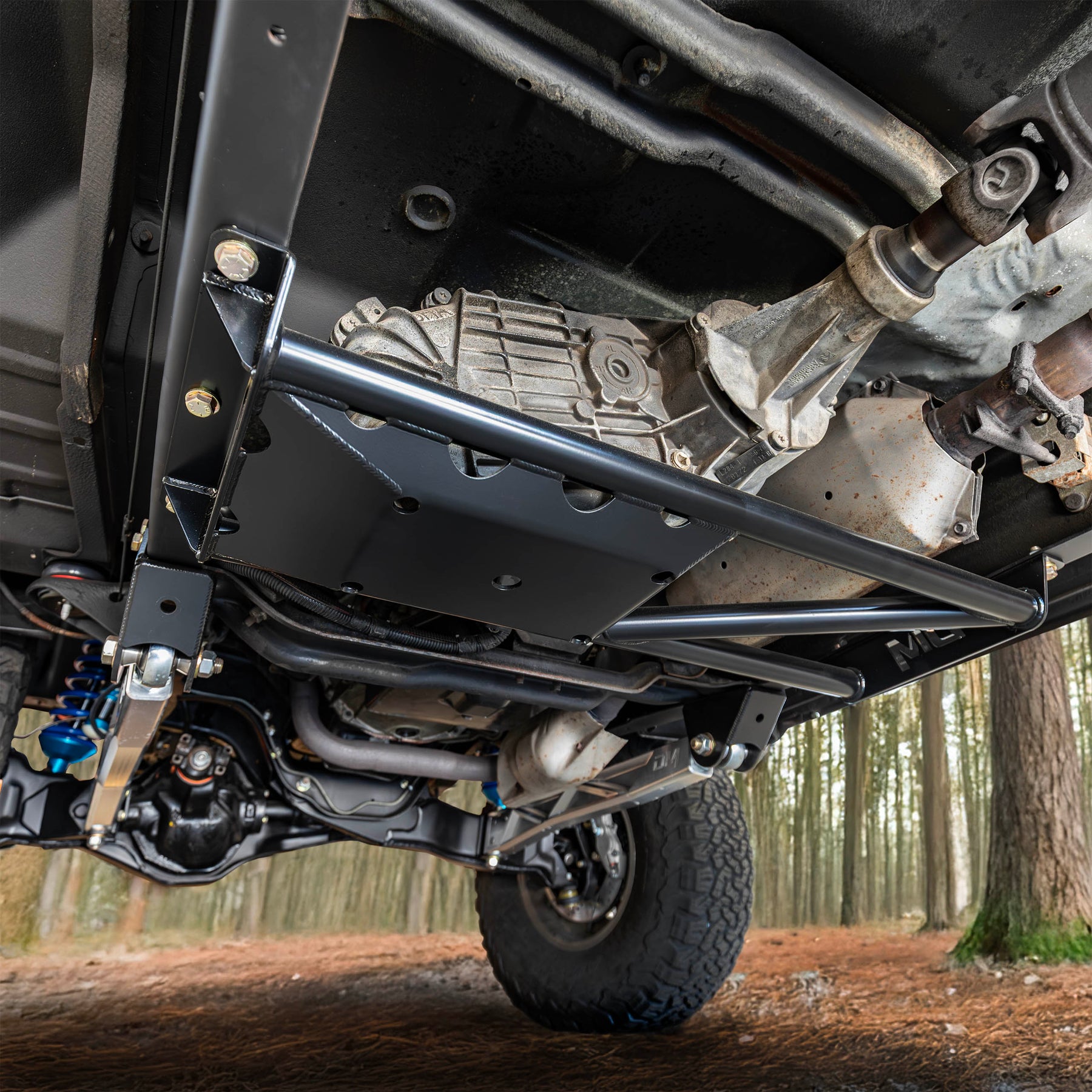 The Transfer Case Skid Plate not only looks great, but it provides maximum ground clearance while protecting your vulnerable transfer case. This will also give your truck an extra structural crossmember between your frame rails. Engineered with laser cut 3/16" steel plate and 1.5" x .120 DOM tubing. It's stout tube and plate design protects your t-case on the one side, including drainage holes allowing water and debris to escape. The other side is open, allowing heat from your exhaust system to escape. The skid plate comes raw or powder coated semi-gloss black and locates in two factory holes on your frame rail. Just drill your other four holes and bolt it on using supplied hardware. Raw option is perfect for anyone looking for a base to build off of such as transmission mounts when doing engine swaps.