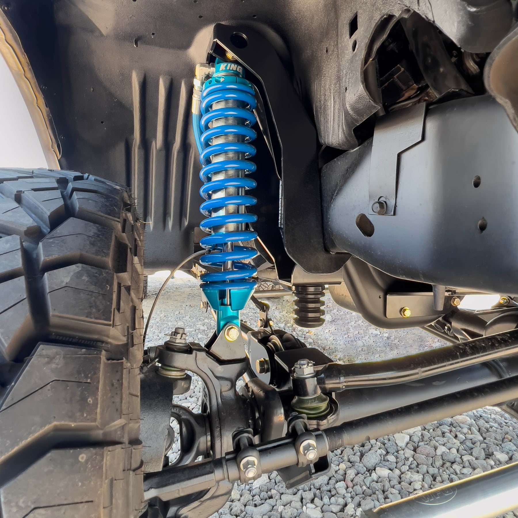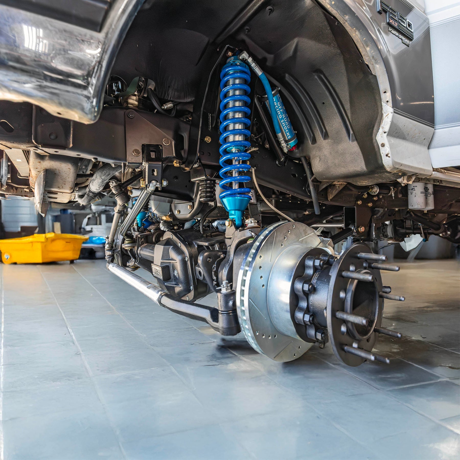 Strength and ride quality are always the number one priority, and swapping over to the popular 05-16 Ford Super Duty Dana 60 axles has never been easier with this full bolt on suspension system. The steel fabricated shock towers give you the ability to run 8" King coil-over shocks and progressive polyurethane bump stops, without having to cut into factory plastic inner fender wells. The caster adjustable links utilize large heim joint pivots and hardware providing the strength and drivability you're looking for in a real performance suspension system. All of our fabricated components are CAD Designed, laser cut, CNC bent, fixture welded and powder coated in a semi gloss black finish. This kit provides 4 to 6" of lift and clears 35'' tires, and 37's with minor trimming of front bumper.